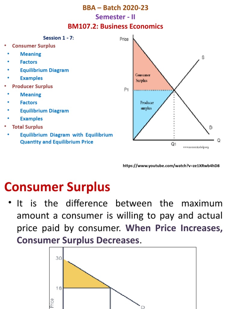 When a marketplace finds consumers paying the same price for a good, we are at the equilibrium price. Consumer surplus, or consumers' surplus. The new consumer surplus is 25 percent of the original consumer surplus. Consumer surplus is an economic measurement to calculate the benefit (i.e., surplus) of what consumers are willing to pay for a good or service in a perfect world, there may be an equilibrium price where both consumers and producers have a surplus (i.e., they are both better off, as. Another way to interpret the. Consumer's surplus is also known as buyer's surplus. In the diagram above, the equilibrium price is p1 and the equilibrium quantity is q1. Your graph should show the surplus as a horizontal line between a. Oq represents the quantity of the commodity that the market purchases given the equilibrium position. The inverse demand curve (or average revenue curve). The price paid so how much surplus marginal benefit did they get if you take out the price paid and over here the total consumer surplus is going to the total consumer surplus in this scenario when we sold four units at thirty thousand dollars is and we're assuming we're selling cars here so we can't. 3total surplus is represented by the area below the a. At the equilibrium price, total surplus is.